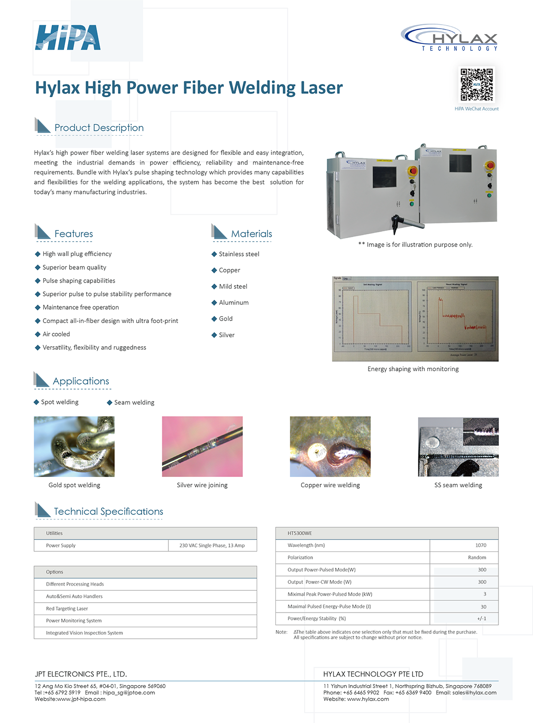 Hylax’s high power fiber welding laser systems are designed for flexible and easy integration, meeting the industrial demands in power efficiency, reliability and maintenance-free requirements. Bundle with Hylax’s pulse shaping technology which provides many capabilities and flexibilities for the welding applications, the system has become the best  solution for today’s many manufacturing industries.